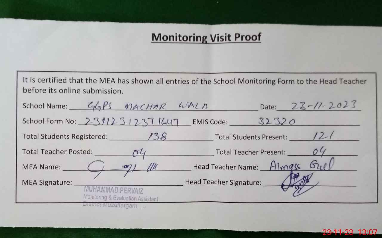 | EMIS Code: 32320552 | Name of School: GGPS MACHAR WALA | |||