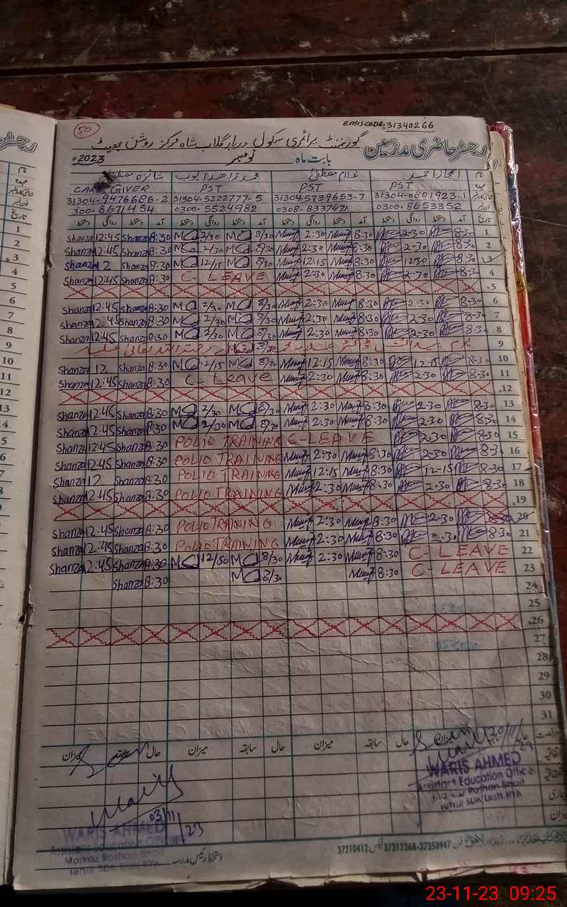 | Name: Mu**** Za**** Ay**** Designation: (School Headmaster's/Headmistress's) PST Phone/Cell Number: 03**** |