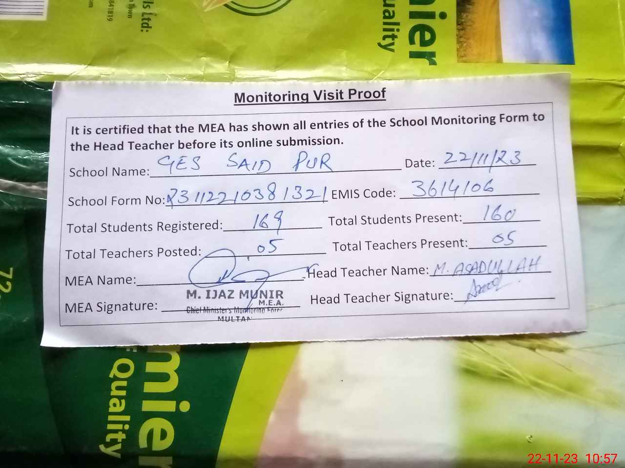 | EMIS Code: 36140106 | Name of School: GES SAID PUR HAFIZ WALA | |||