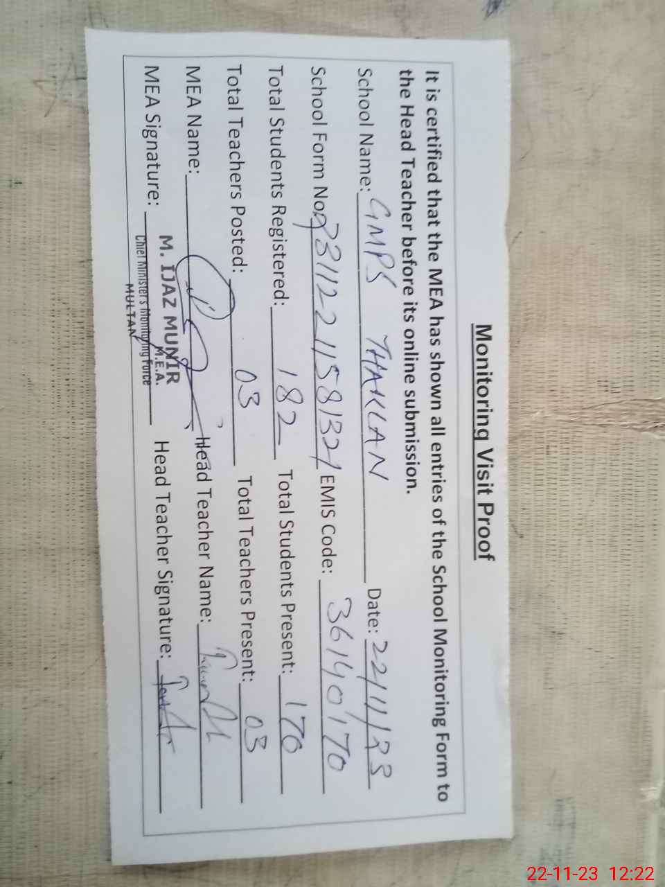 | EMIS Code: 36140170 | Name of School: GMPS THAKLAN JALALPUR PIRWALA | |||