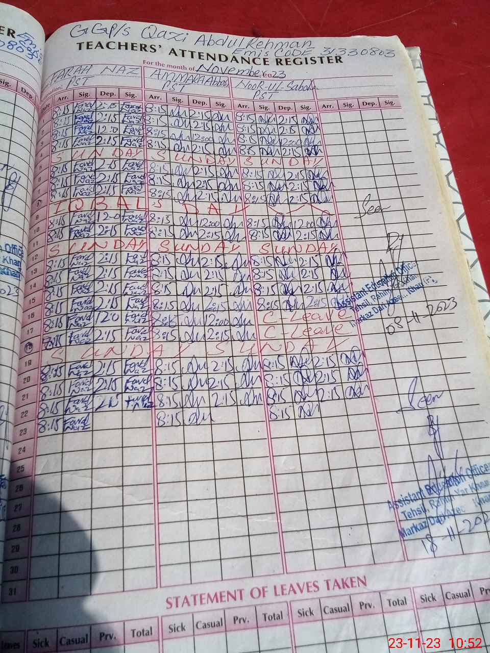 | EMIS Code: 31330803 | Name of School: GGPS QAZI ABADUR REHMAN | |||