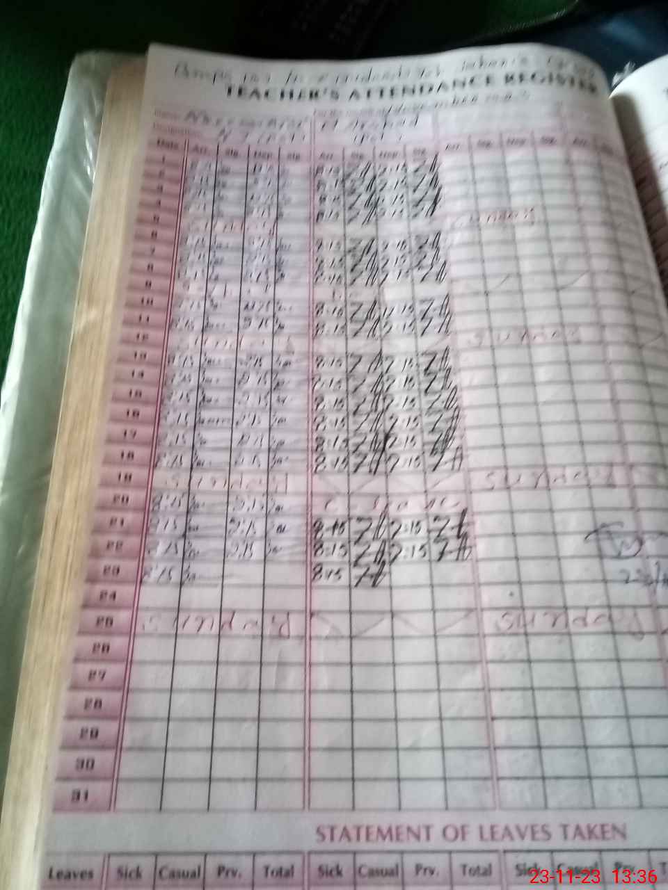 | Leave | Duty | Absent | Maternity | Medical | Ex- Pak |