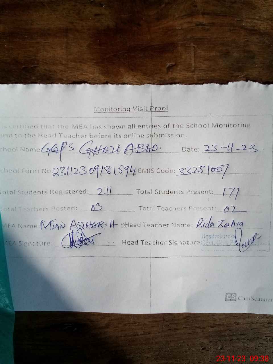 | EMIS Code: 33251007 | Name of School: GGPS GHAZI ABAD | |||
