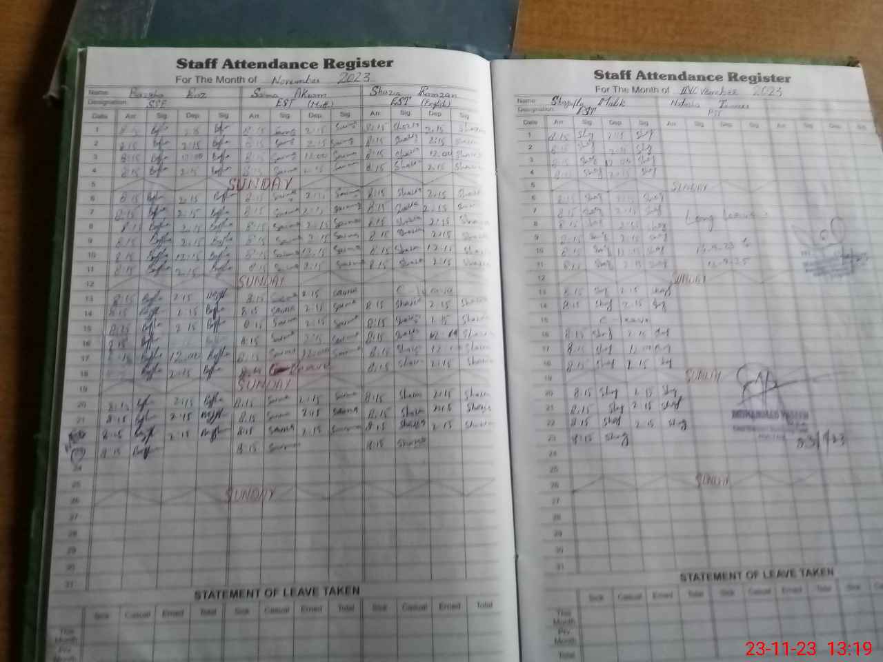 | CNIC | Full Name | Designation | R/C | Absence During Last Calender Month |