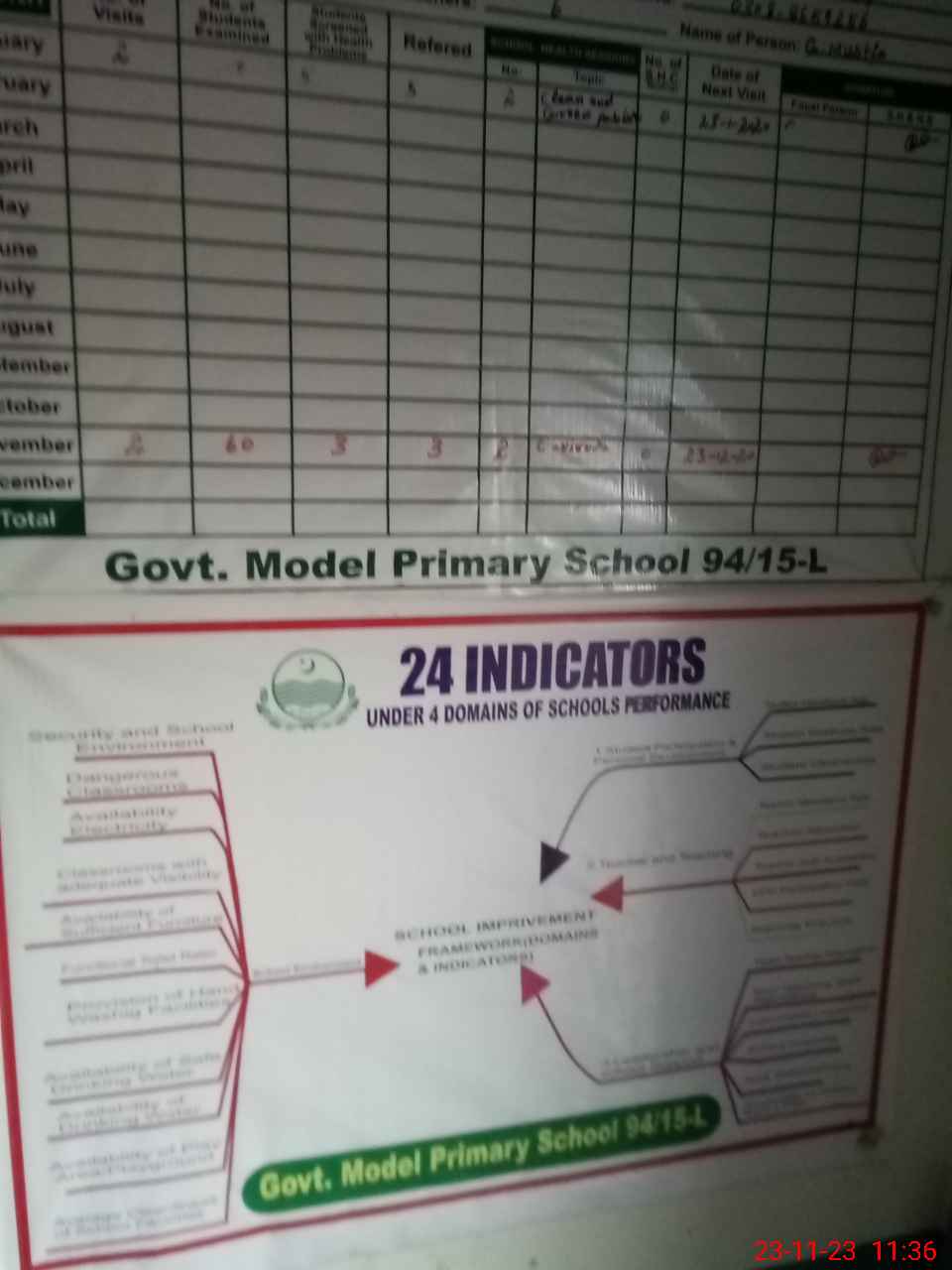 | School Visited by School Health & Nutrition Supervisor (No. of Visits) | 1 | Name1: | Iftikhar Ahmed | Name2: | Nil |