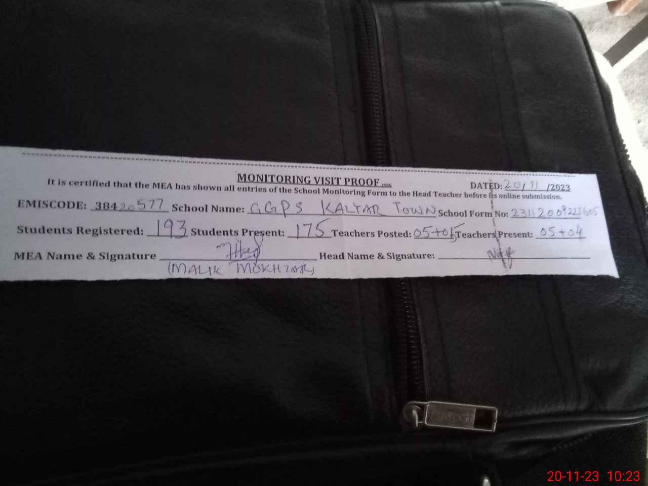 | Attendance Register | Head Teacher | MEA with School | Visit Proof |