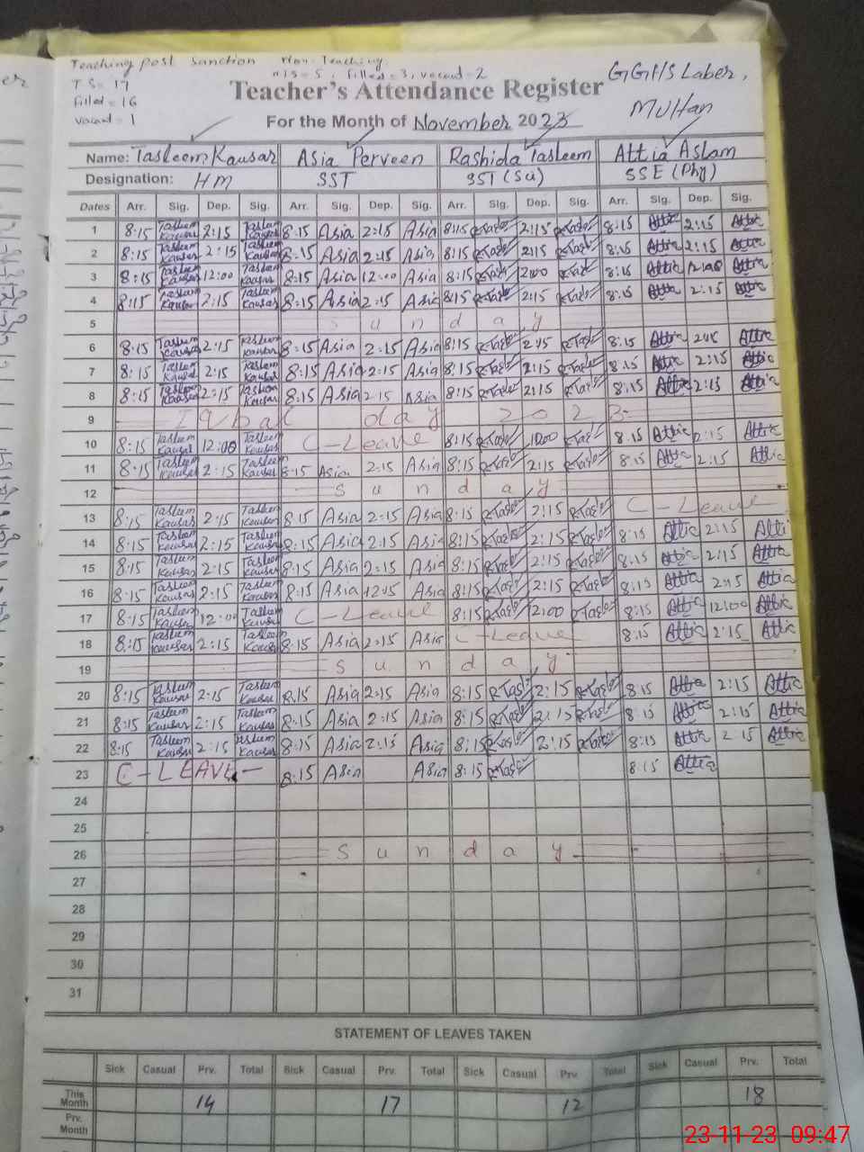 | 32**** | Ma**** Kh**** | EST | Regular | 0 | 0 | 0 | 0 | 0 | 0 | 0 | 0 | 0 | Maternity |