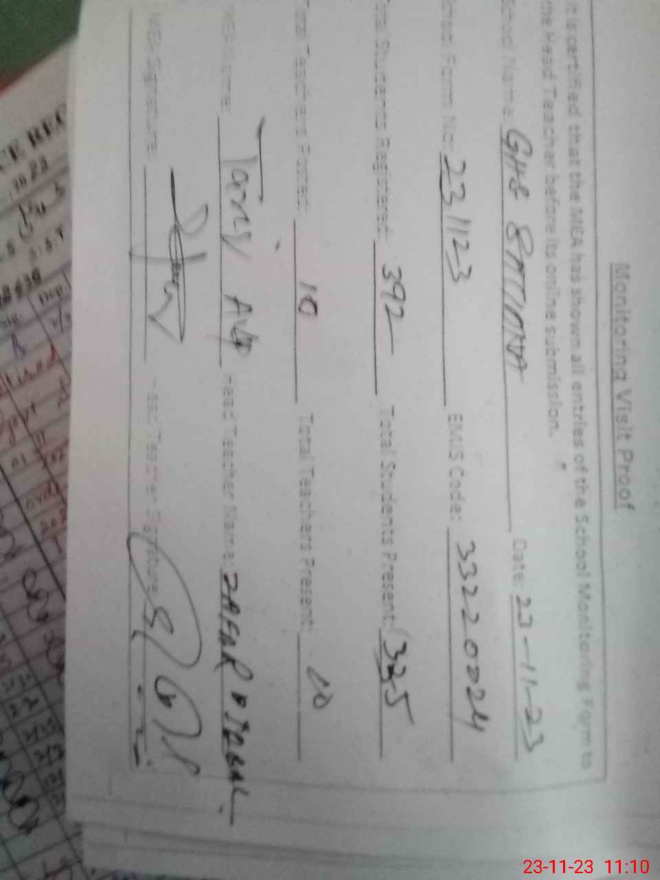 | Certified that this School was Inspected by the Undersigned MEA/DMO Today and the Information Stated Above is as Per Record. | |||||