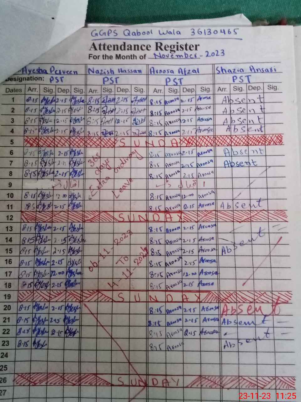 | 36**** | Sh**** An**** | 1 | 1 | 0 | 0 | 0 | 0 | 0 | 0 | 0 | 0 | 0 | Absent (Un-Authorized) |