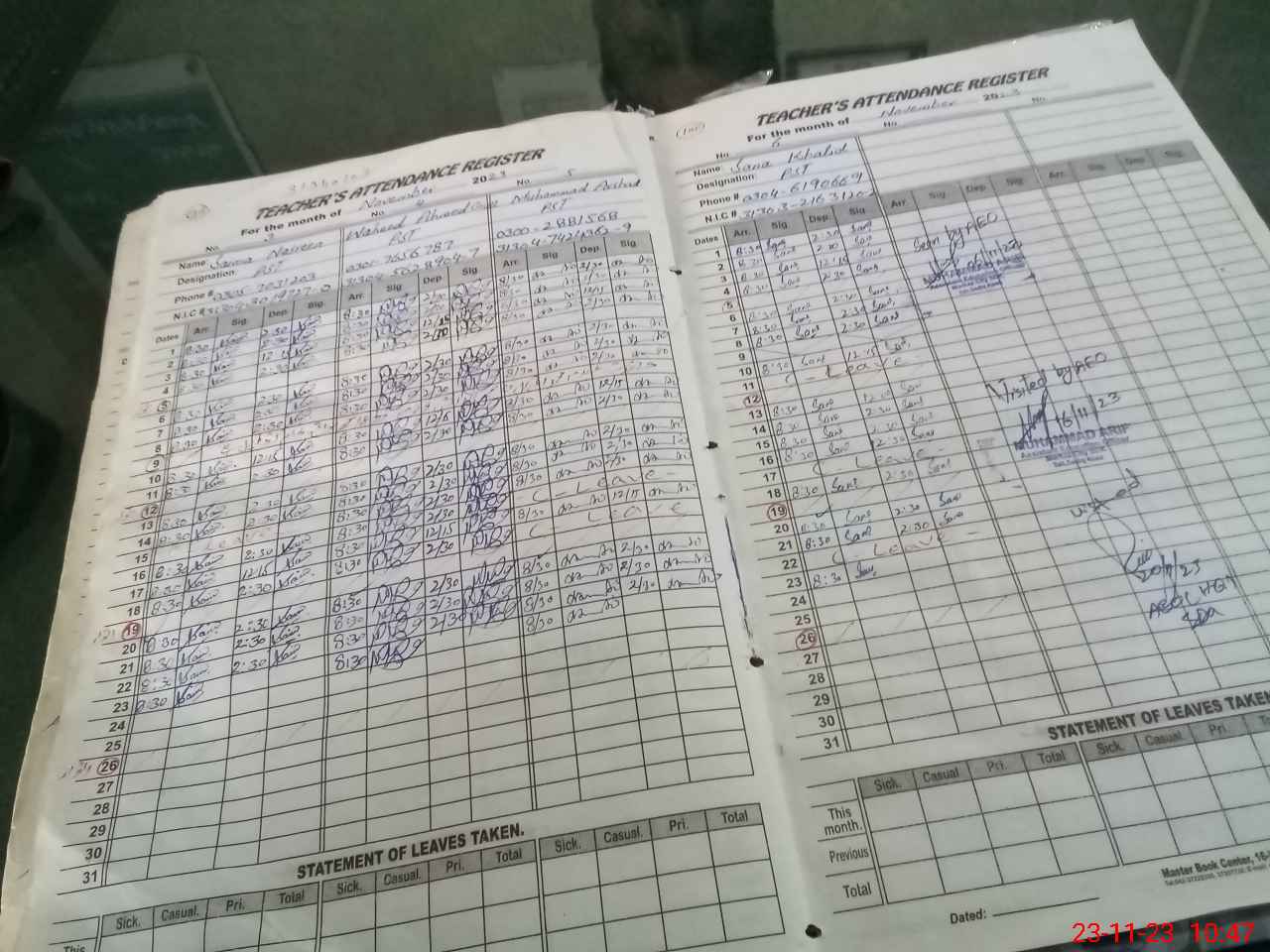 | Monitoring Date: 23-11-2023 | Start Time: 23-11-2023 10:27 AM | End Time: 23-11-2023 11:07 AM | Name of MEA: Mu**** Iz**** UlHa**** | |
