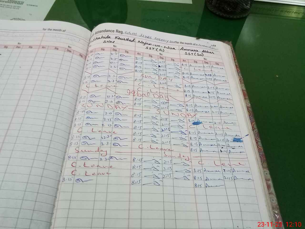 | CNIC | Full Name | Designation | R/C | Absence During Last Calender Month |