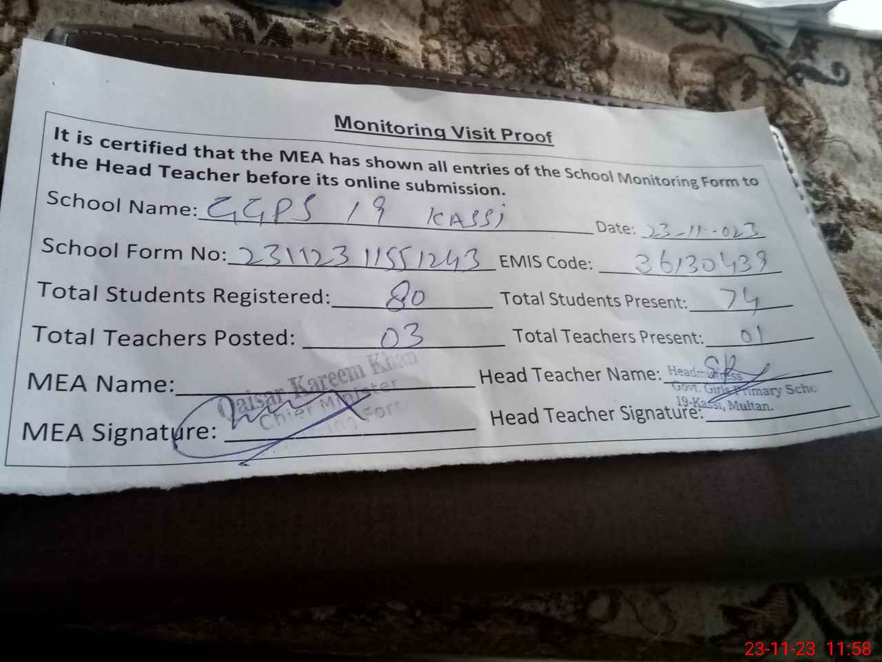 | EMIS Code: 36130439 | Name of School: GGPS 19 KASSI P/O M JHOKE LASHKAR PUR MUKHDOOM RASHED | |||