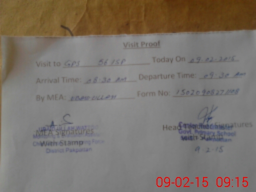 | Attendance Register | Head Teacher | MEA with School | Visit Proof |