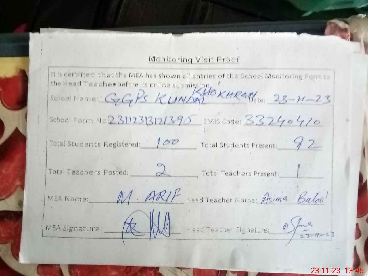 | EMIS Code: 33240410 | Name of School: GGPS KONDAL KHAOKRAN | |||