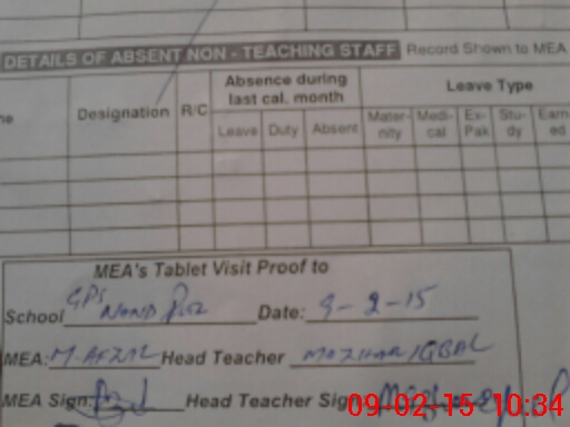 | Attendance Register | Head Teacher | MEA with School | Visit Proof |