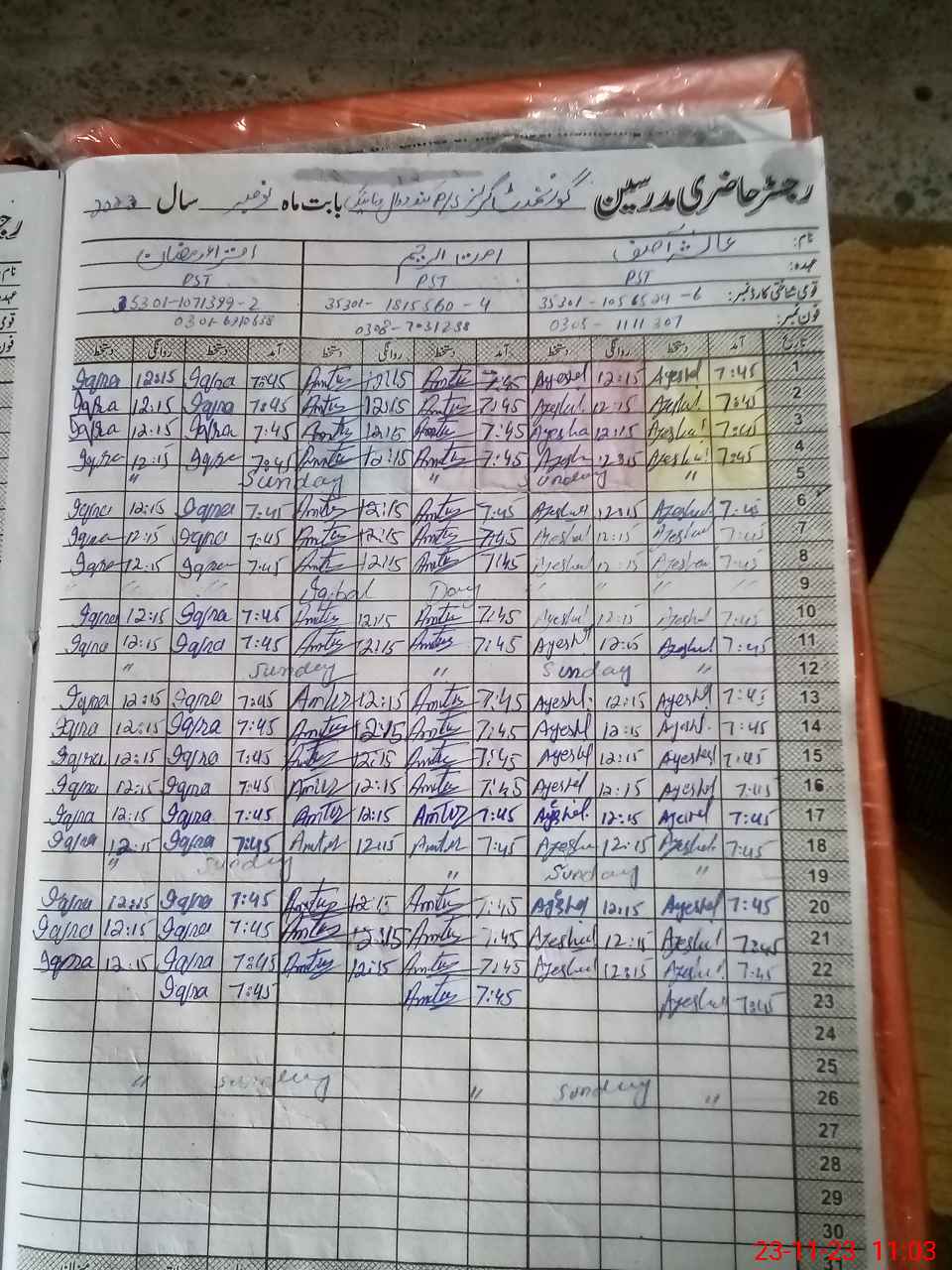 | CNIC | Full Name | Designation | R/C | Absence During Last Calender Month |