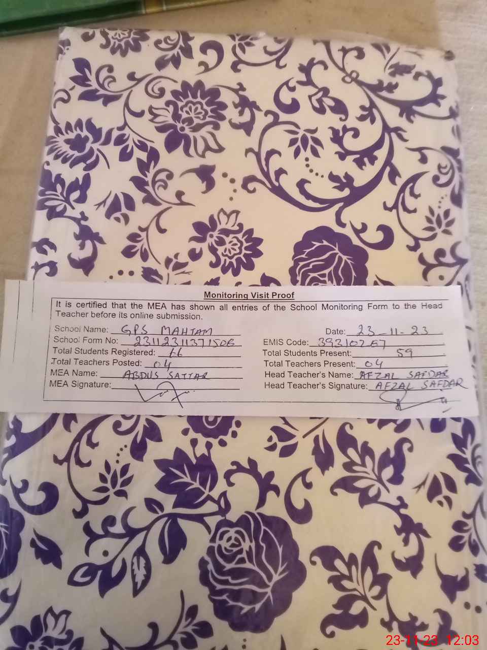 | EMIS Code: 39310287 | Name of School: GPS MAHTAM | |||