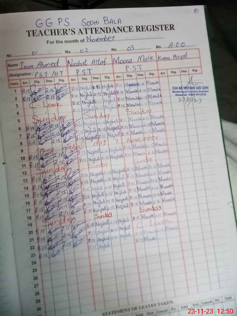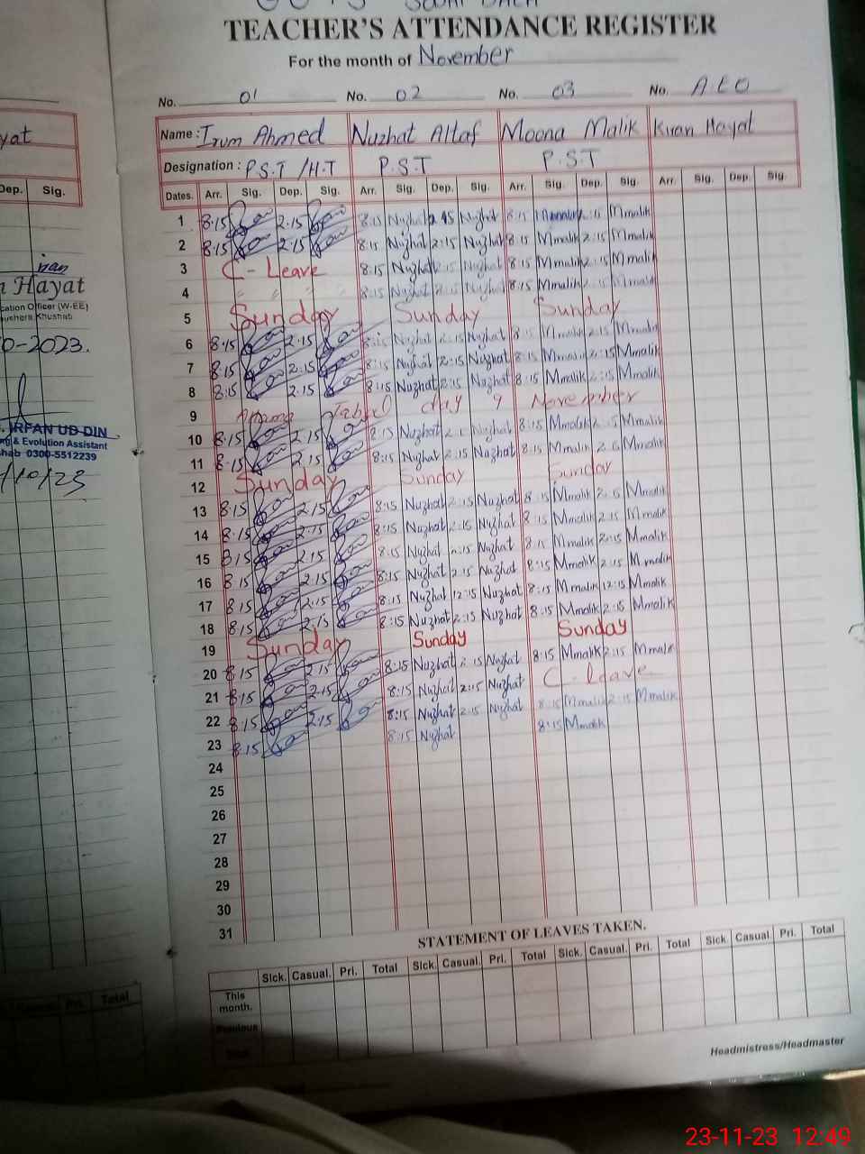 | Name: IR**** AH**** Designation: (School Headmaster's/Headmistress's) PST Phone/Cell Number: 03**** |