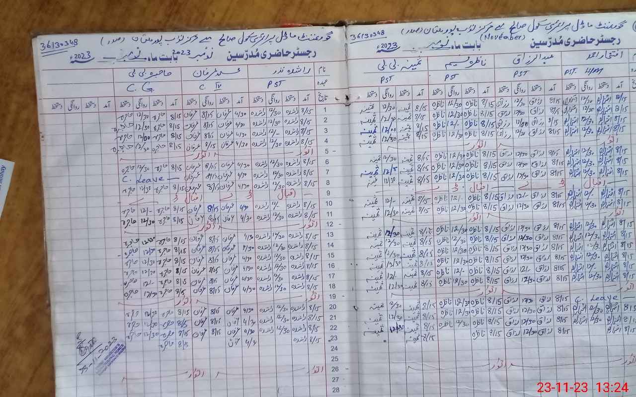 | CNIC | Full Name | Designation | R/C | Absence During Last Calender Month |