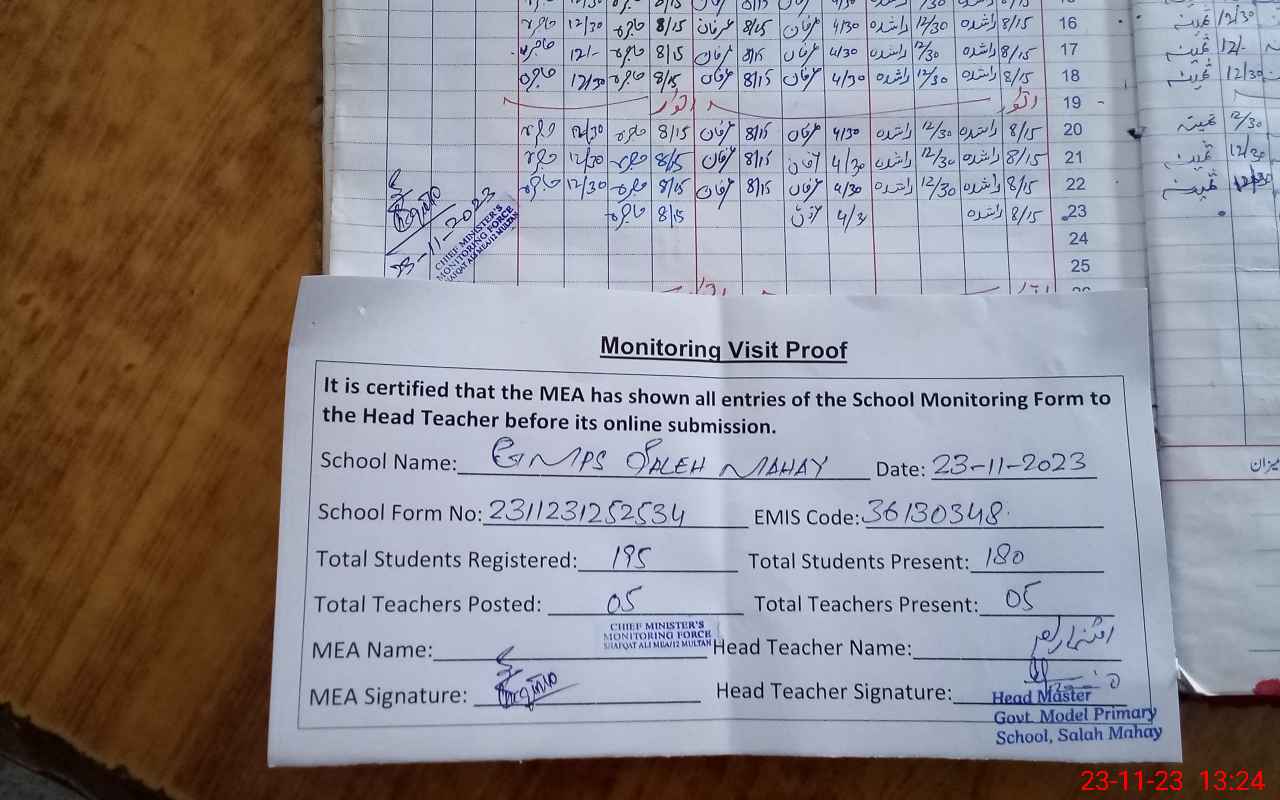 | EMIS Code: 36130348 | Name of School: GMPS SALEH MEHAY POST BOX NAWAB PUR | |||