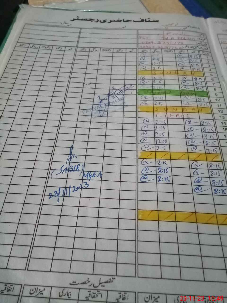 | CNIC | Full Name | Designation | R/C | Absence During Last Calender Month |