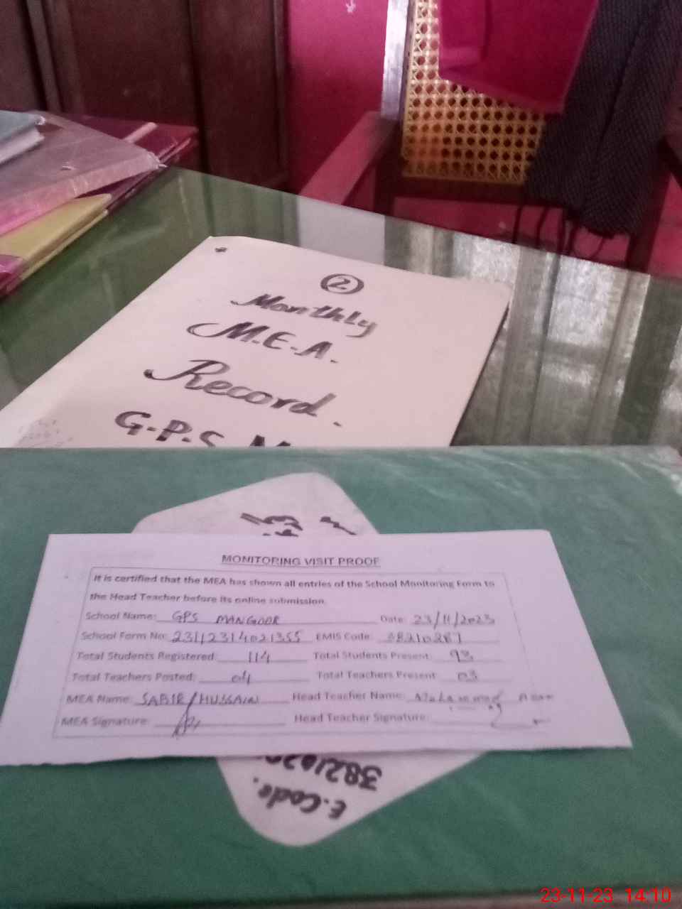 | Attendance Register | Head Teacher | MEA with School | Visit Proof |