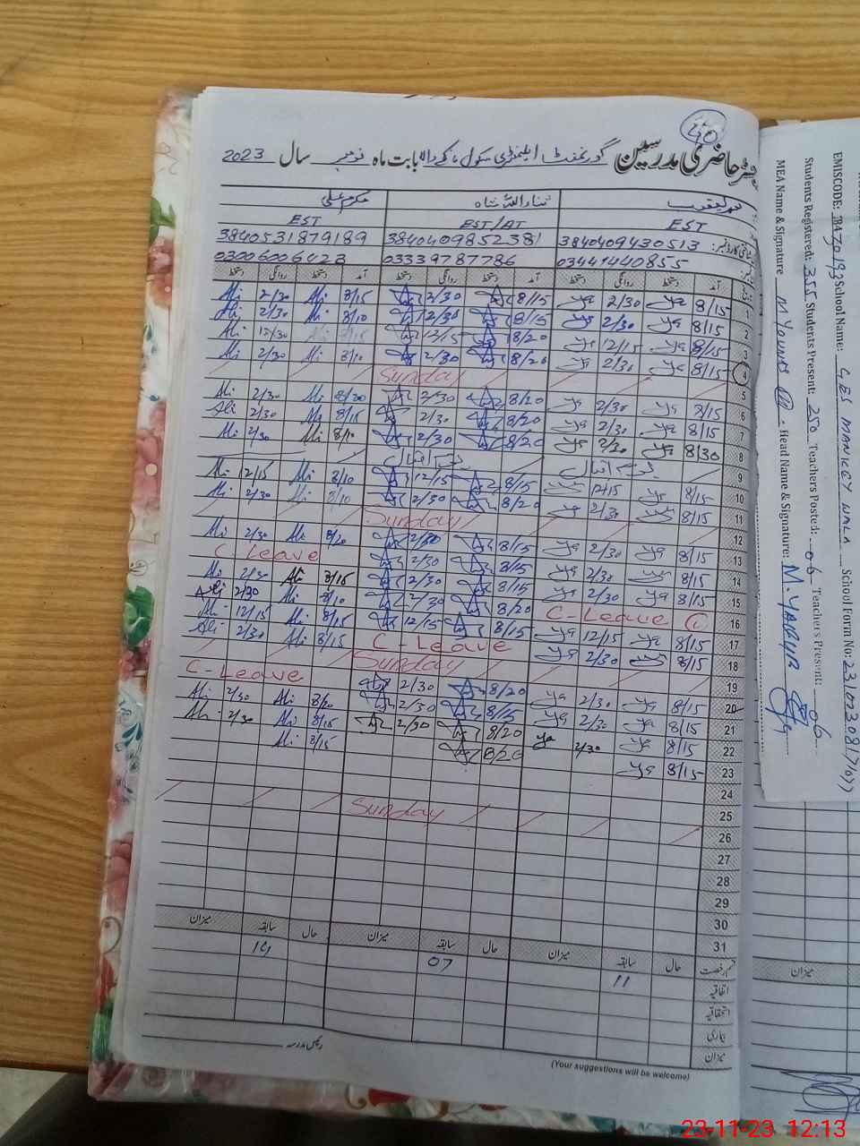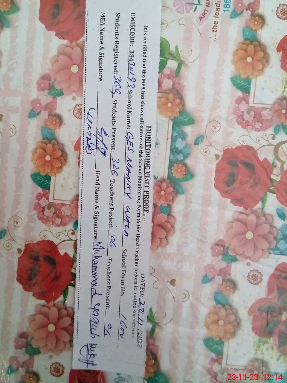 | Name: MU**** YA**** Designation: (School Headmaster's/Headmistress's) EST Phone/Cell Number: 03**** |