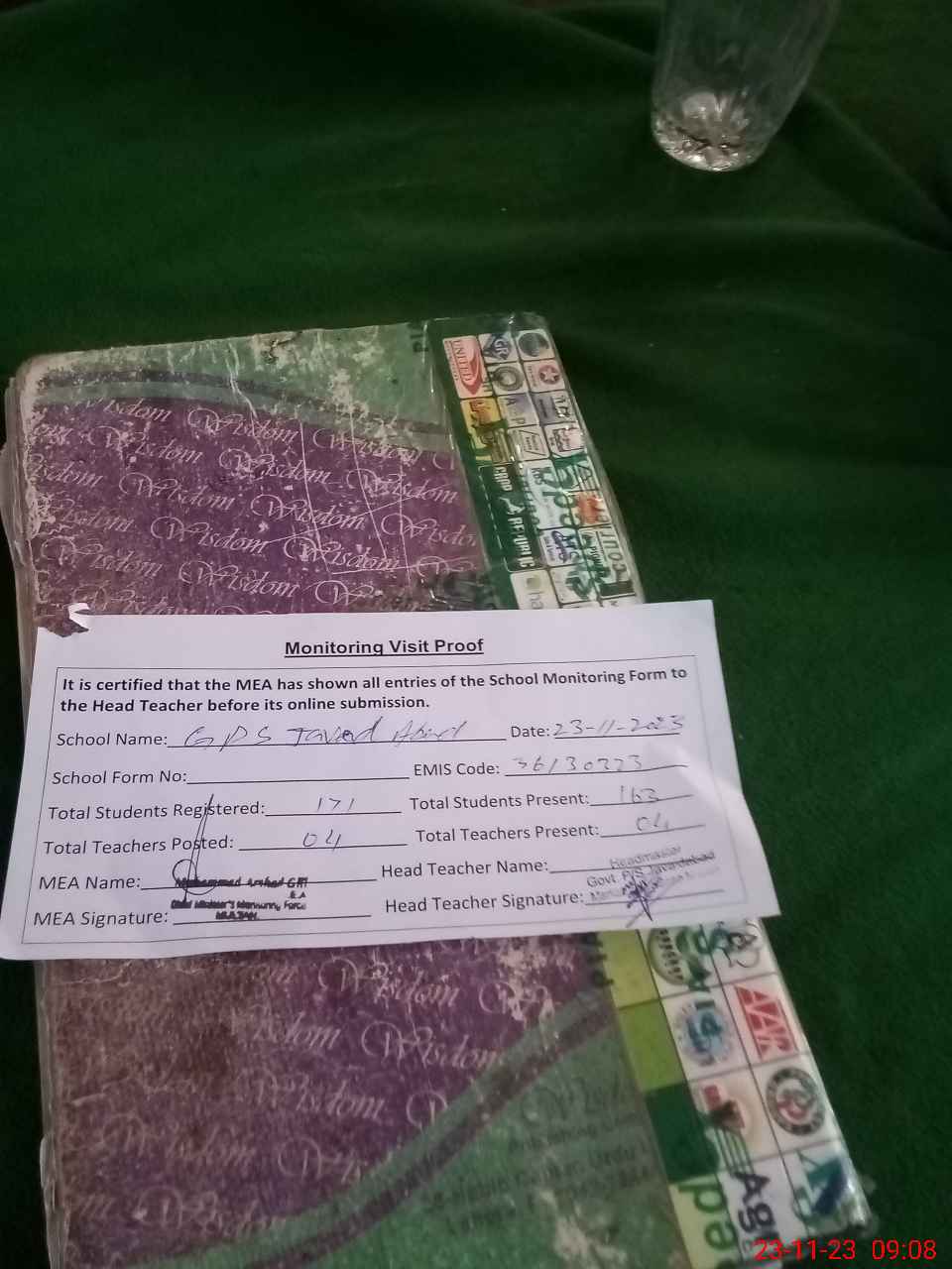| EMIS Code: 36130323 | Name of School: GPS JAVED ABAD P/O SIKANDARABAD MULTAN | |||
