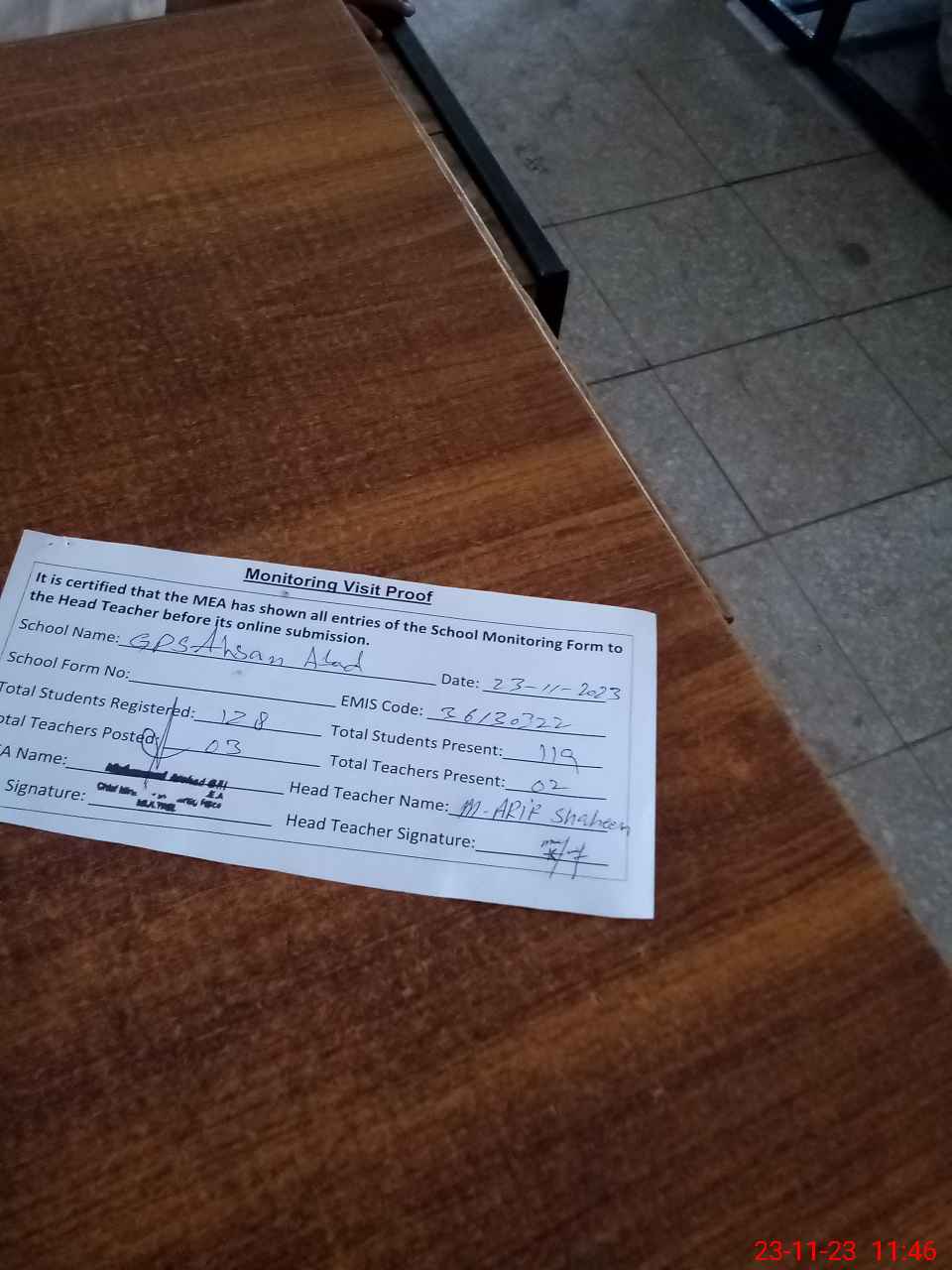 | EMIS Code: 36130322 | Name of School: GPS AHSAN ABAD | |||