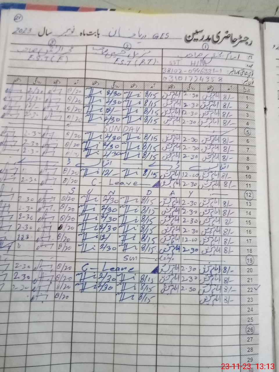 | Name: Ma**** Im**** Ba**** Designation: (School Headmaster's/Headmistress's) S.S.T.(Arts) Phone/Cell Number: 03**** |