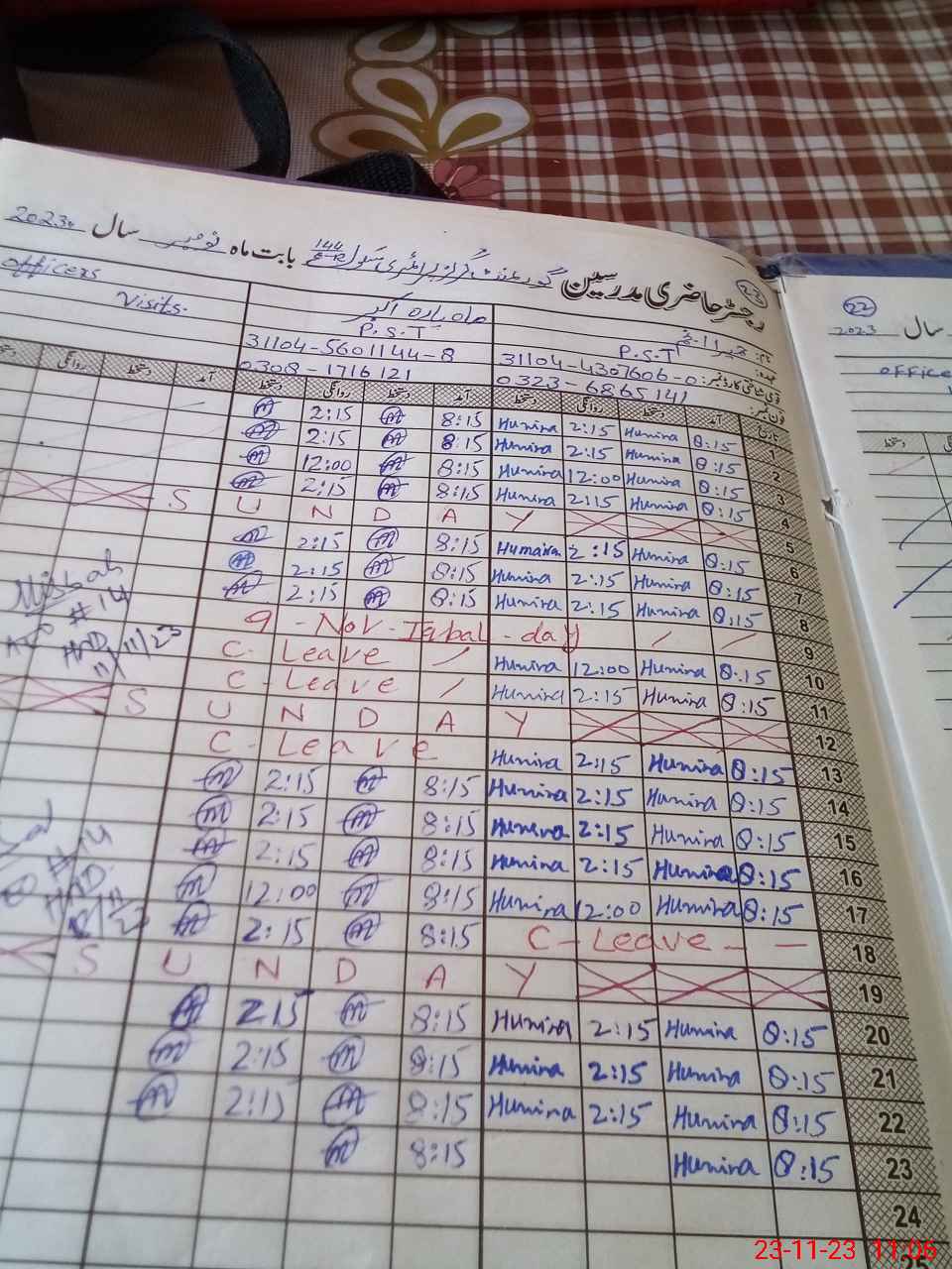 | Name: HU**** AN**** Designation: (School Headmaster's/Headmistress's) PTC Phone/Cell Number: 03**** |