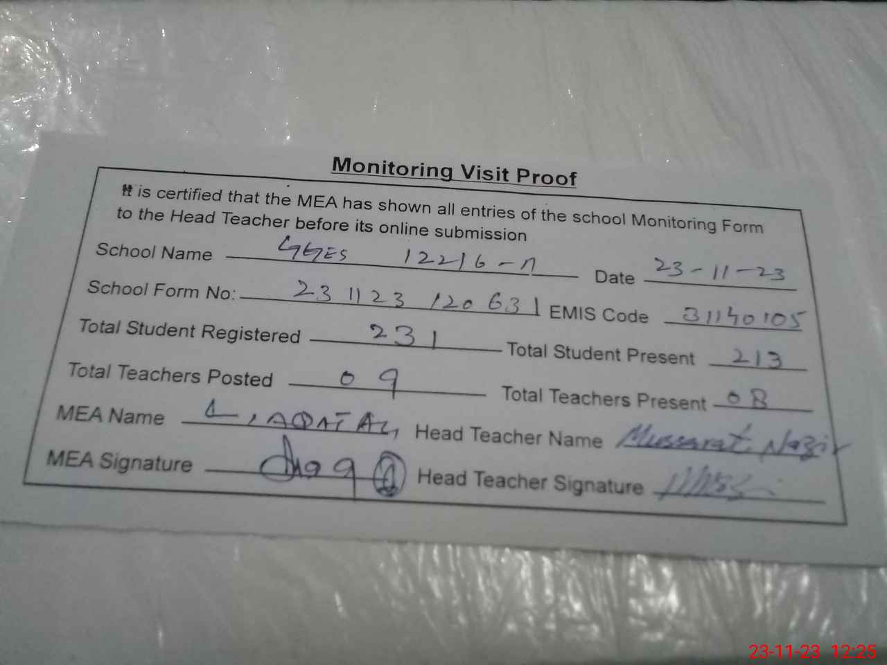 | EMIS Code: 31140105 | Name of School: GGES CHAK 122/6-R | |||