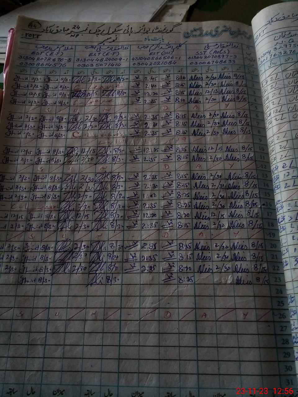 | Name: Zu**** Al**** Designation: (School Headmaster's/Headmistress's) SST Phone/Cell Number: 03**** |