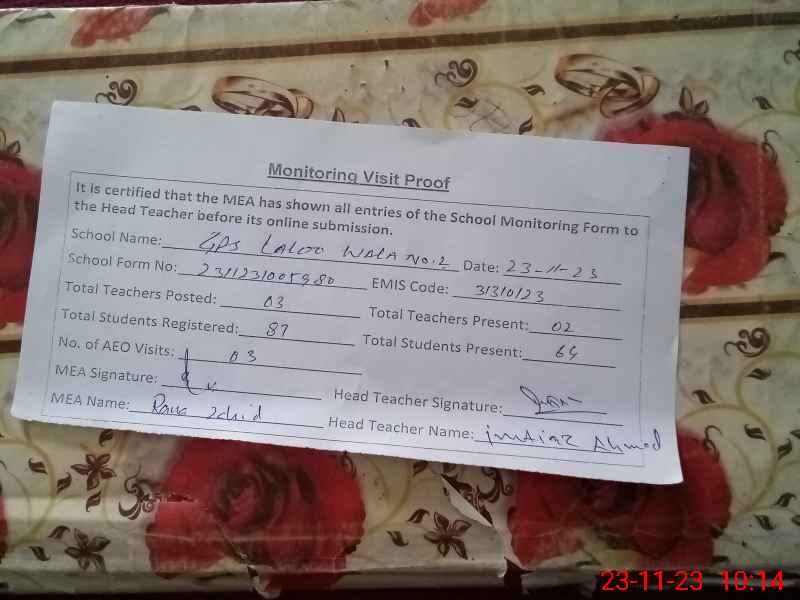 | EMIS Code: 31310123 | Name of School: GPS LALOO WALA | |||