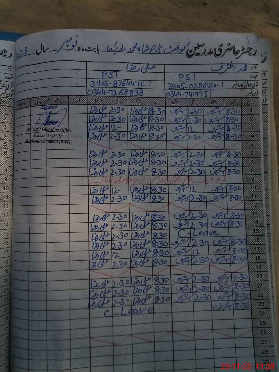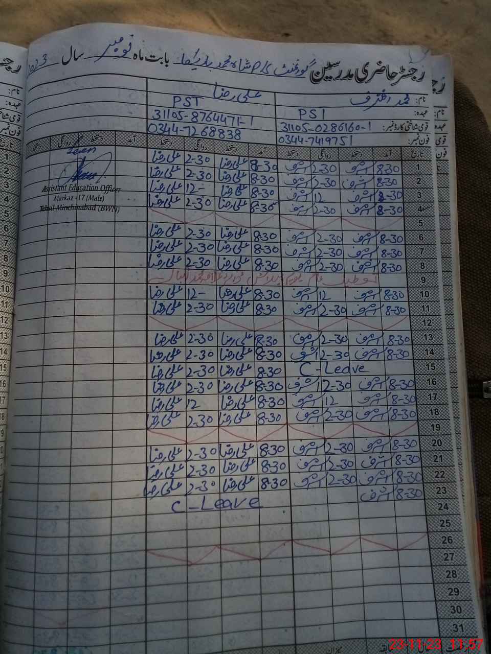 | Name: MU**** AS**** Designation: (School Headmaster's/Headmistress's) PST Phone/Cell Number: 03**** |