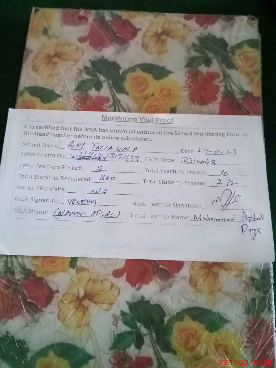 | EMIS Code: 31310048 | Name of School: GHS TALA WALA | |||