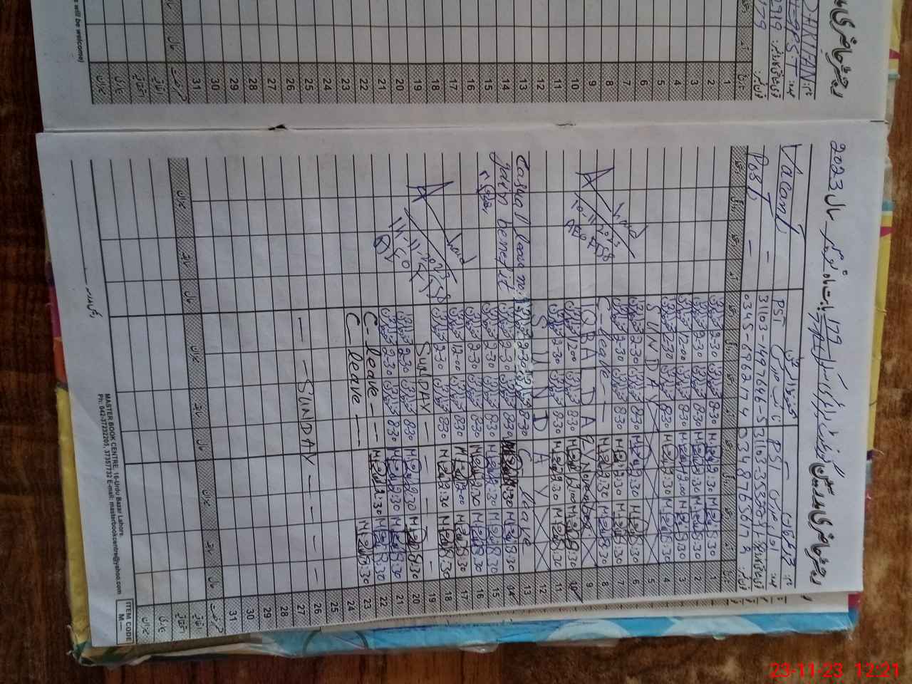 | CNIC | Full Name | Designation | R/C | Absence During Last Calender Month |