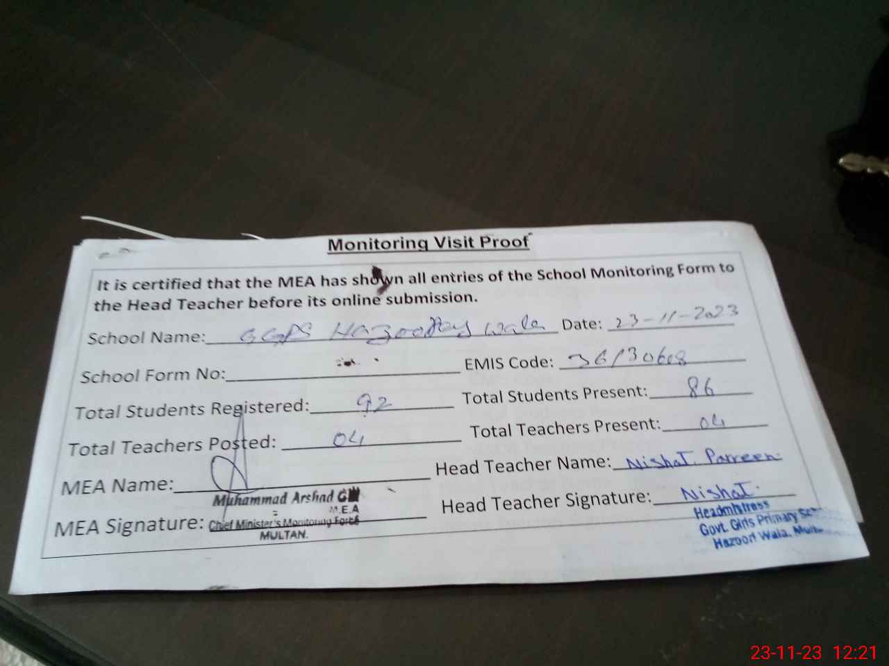 | EMIS Code: 36130608 | Name of School: GGPS HAZOORI WALA MULTAN | |||