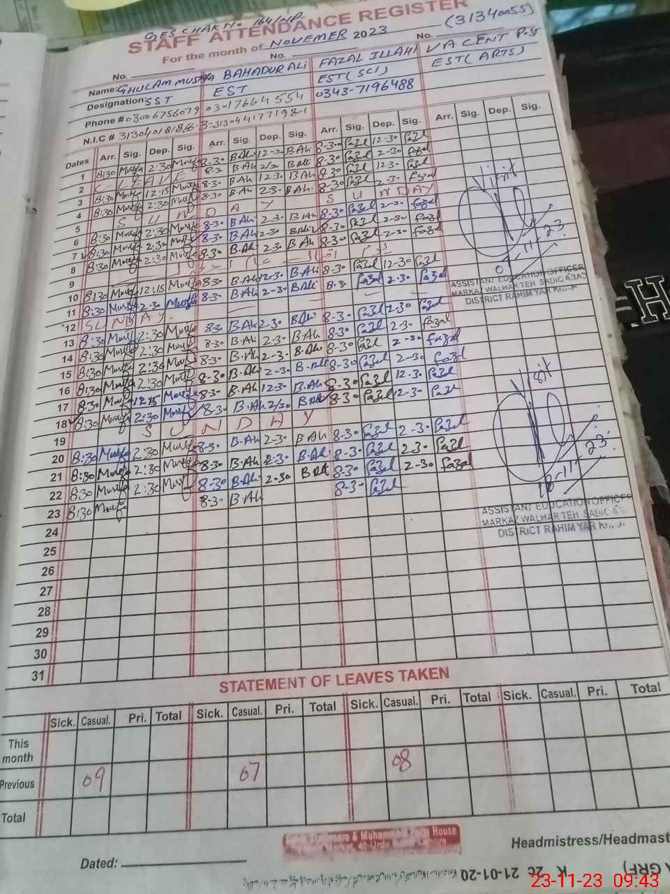 | Name: Ba**** Al**** Designation: (School Headmaster's/Headmistress's) EST Phone/Cell Number: 03**** |