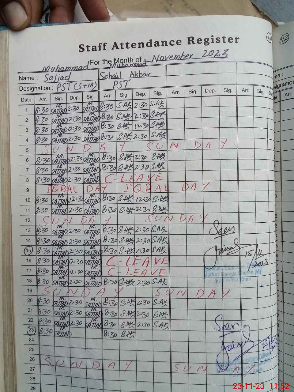 | CNIC | Full Name | Designation | R/C | Absence During Last Calender Month |