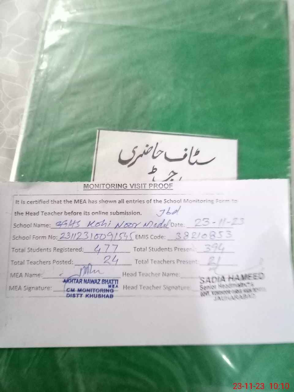 | EMIS Code: 38210853 | Name of School: GGHS KOHINOOR MODEL JAUHARABAD | |||