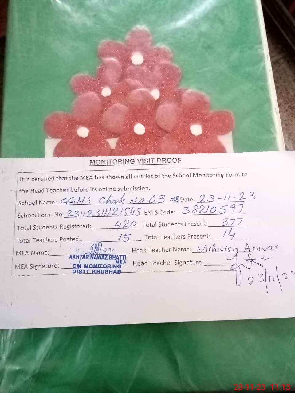 | EMIS Code: 38210597 | Name of School: GGHS CHAK NO.63 MB | |||