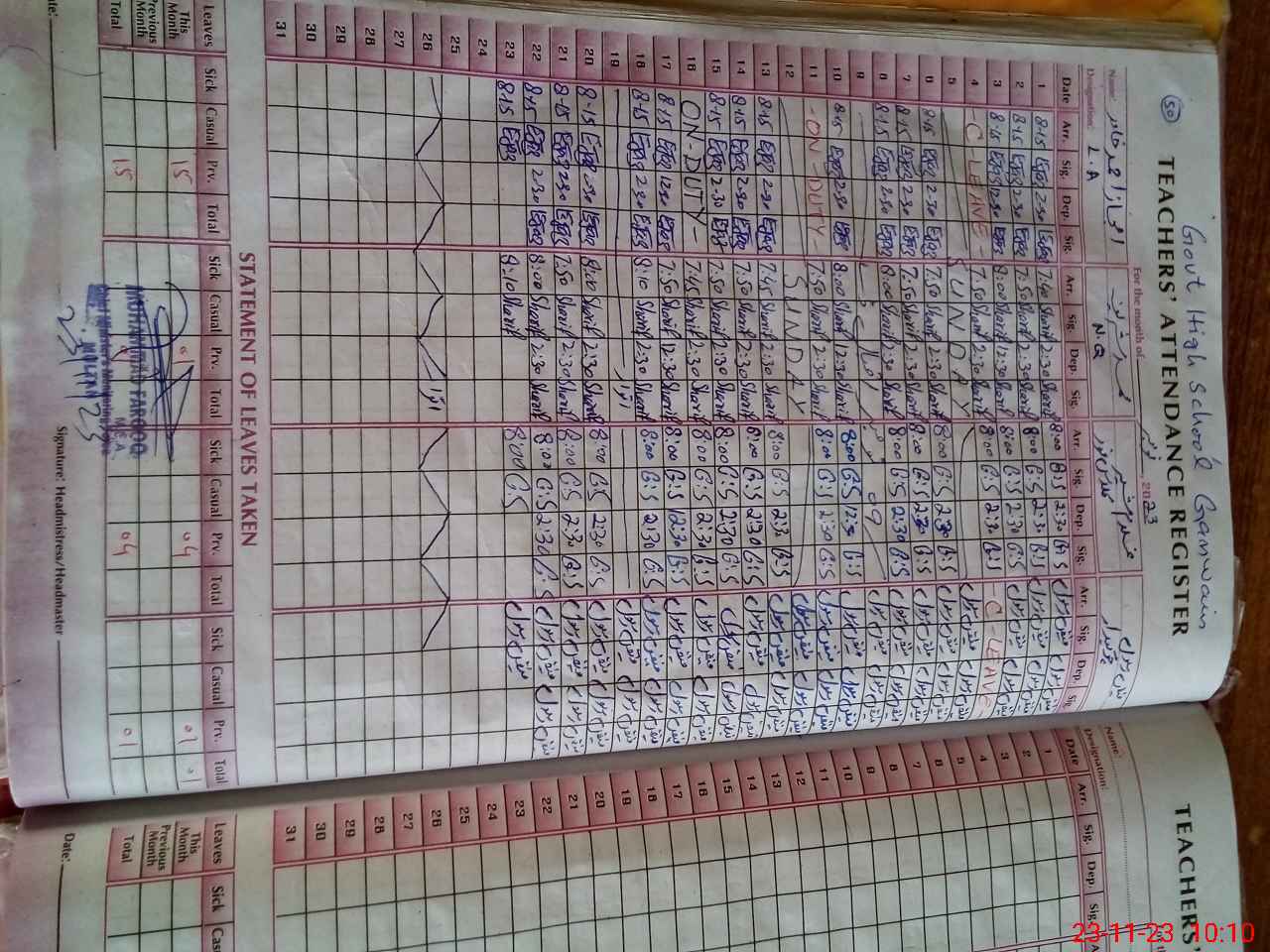 | Leave | Duty | Absent | Maternity | Medical | Ex- Pak |