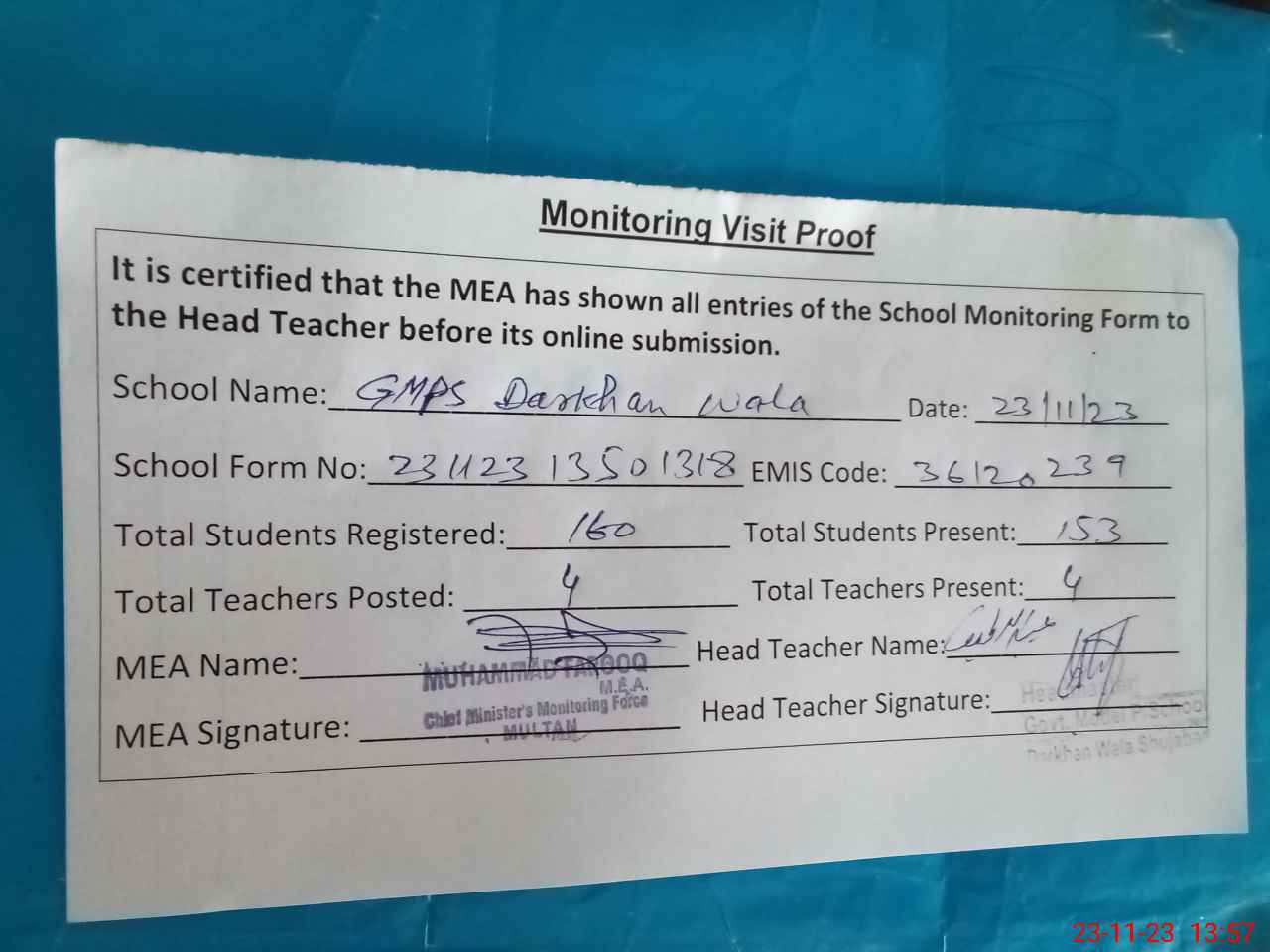 | EMIS Code: 36120239 | Name of School: GMPS DARKHAN WALA | |||