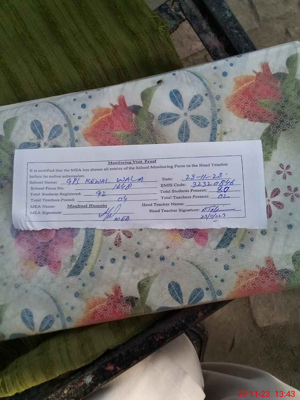 | EMIS Code: 32320846 | Name of School: GPS KEWAL WALA | |||