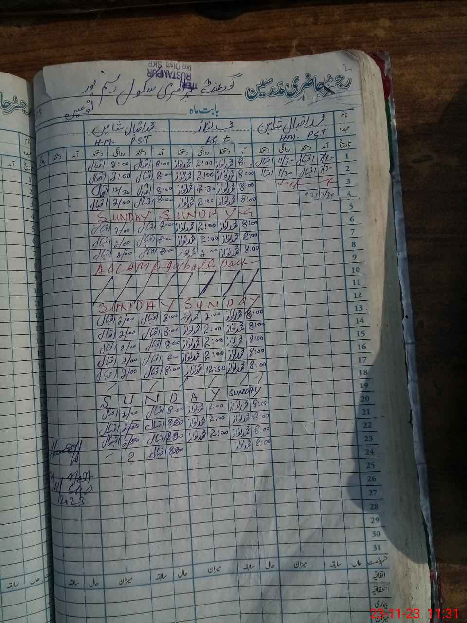 | CNIC | Full Name | Designation | R/C | Absence During Last Calender Month |