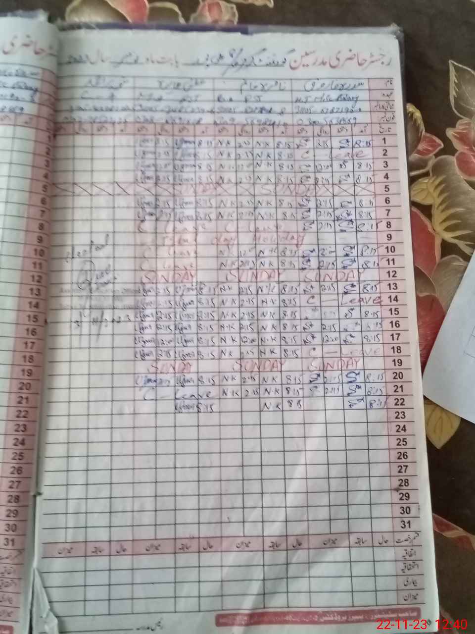 | CNIC | Full Name | Designation | R/C | Absence During Last Calender Month |