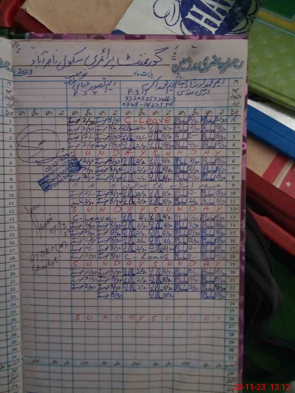 | Name: MIR**** Designation: (School Headmaster's/Headmistress's) PST Phone/Cell Number: 03**** |