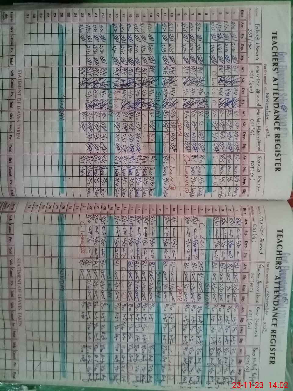 | CNIC | Full Name | Designation | R/C | Absence During Last Calender Month |