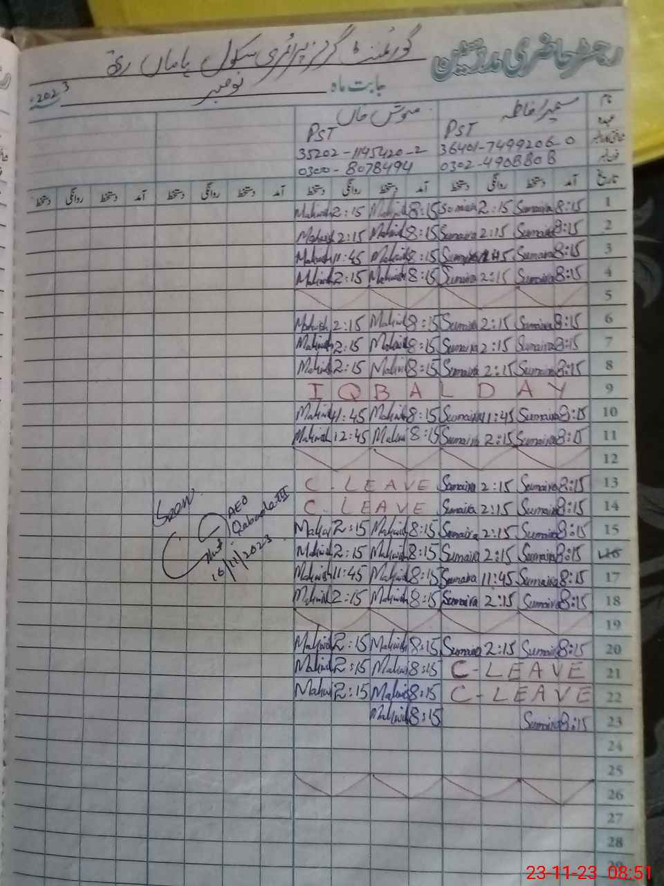 | Name: SU**** FA**** Designation: (School Headmaster's/Headmistress's) PST Phone/Cell Number: 03**** |
